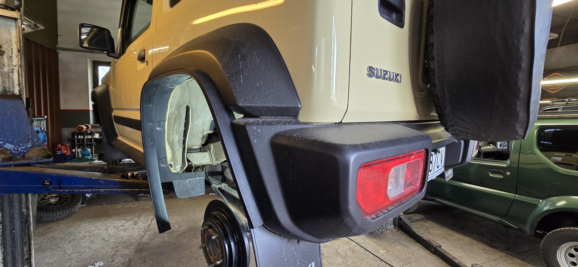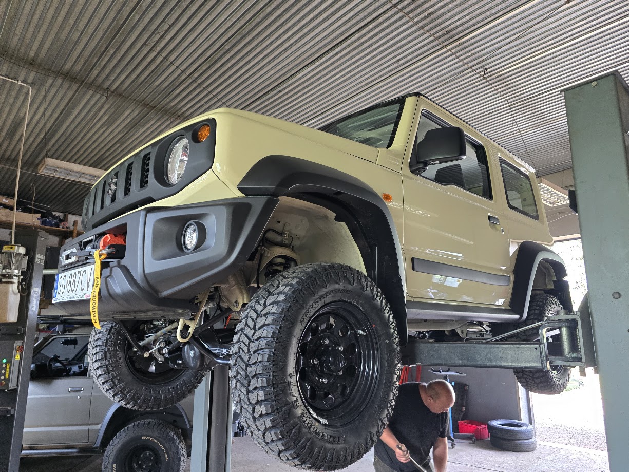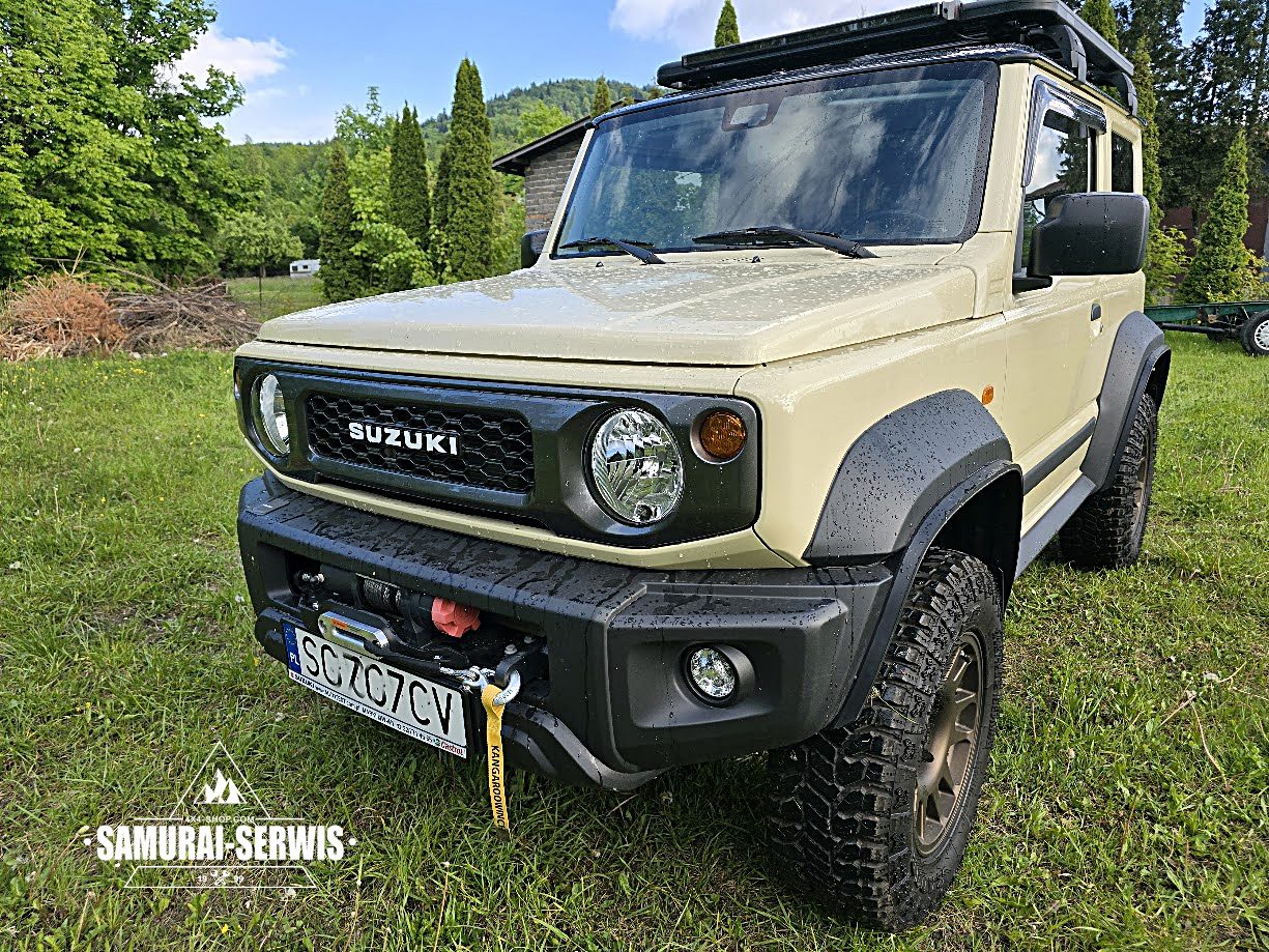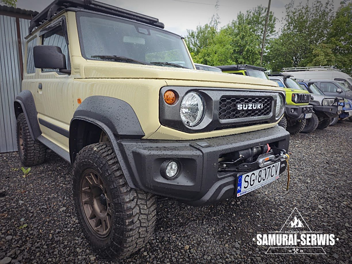 Kolejna udana modyfikacja Suzuki Jimny JB74 opuściła nasz warsztat – tym razem w efektownym, piaskowym kolorze! W ramach projektu wykonaliśmy: