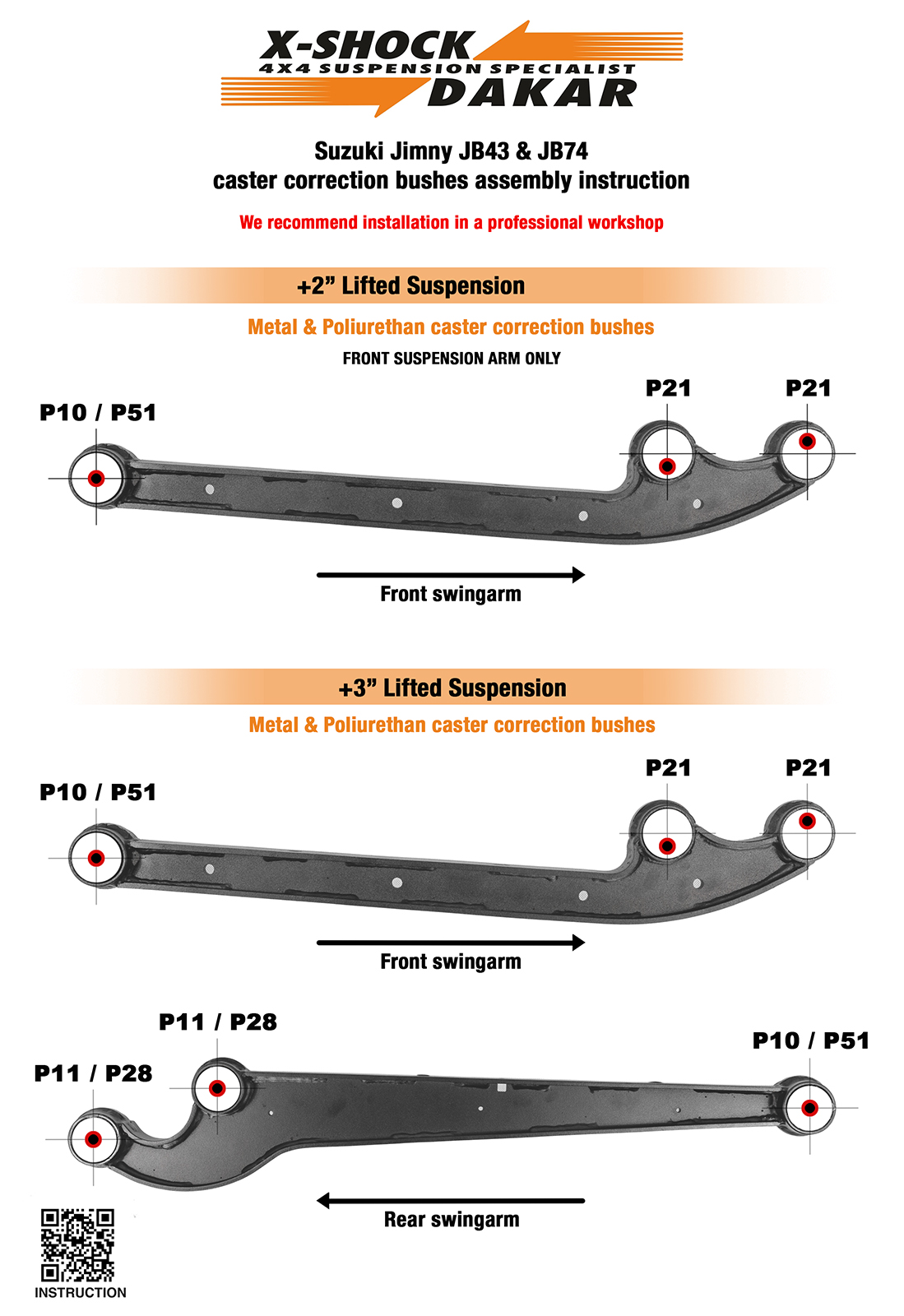Kompletny zestaw poliuretanowych tulei do przednich i tylnych wahaczy zawieszenia oraz simerbloków z mimośrodami do Suzuki Jimny. Tuleje zawieszenia wykonano z wysokiej jakości poliuretanu o twardości 80 ShA w formie jednoczęściowych odlewów. Takie rozwiązanie eliminuje typowe problemy tulei dzielonych, zapewnia łatwiejszy montaż oraz prawidłową, stabilną pracę zawieszenia. Zastępuje fabryczne tuleje gumowe, poprawiając precyzję prowadzenia, stabilność oraz trwałość zawieszenia – zarówno w codziennym użytkowaniu, jak i w terenie.