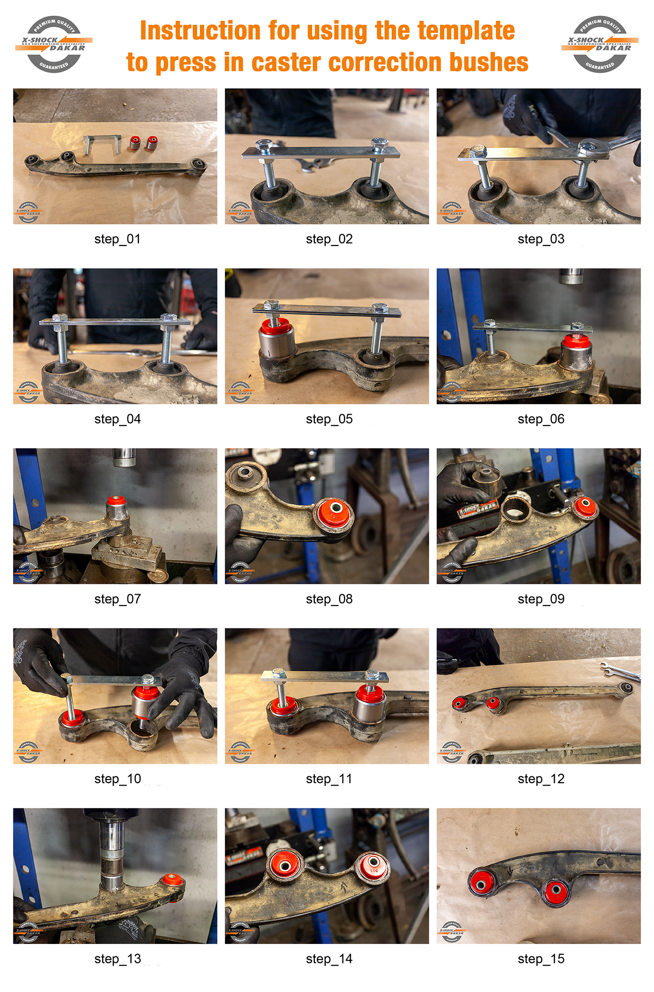 Komplet poliuretanowych tulei zawieszenia z mimośrodami silentblock