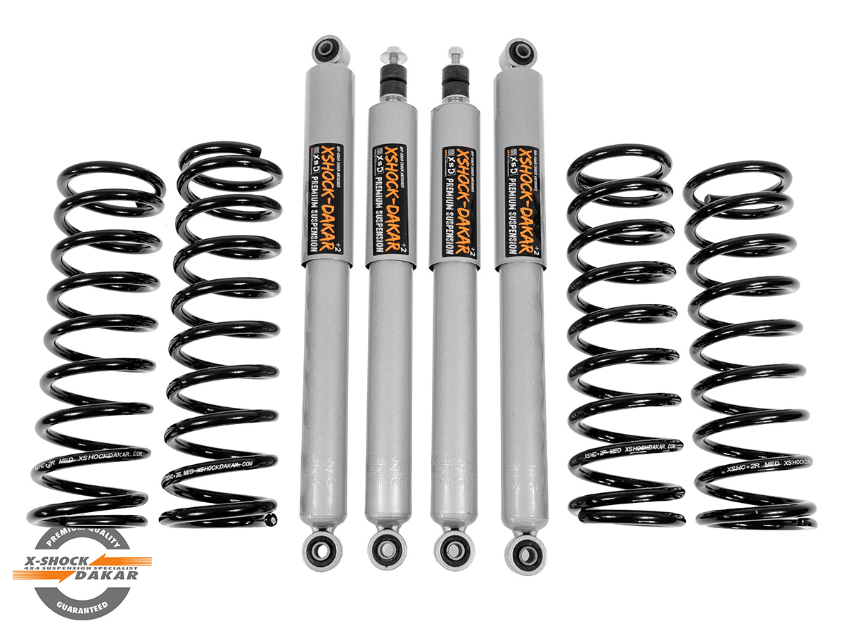 Zestaw zawieszenia Lift +2" marki XShockDakar.com to komplet sprężyn i amortyzatorów, który idealnie łączy właściwości terenowe z pewnym i stabilnym zachowaniem auta na drodze. To rozwiązanie stworzone zarówno dla miłośników