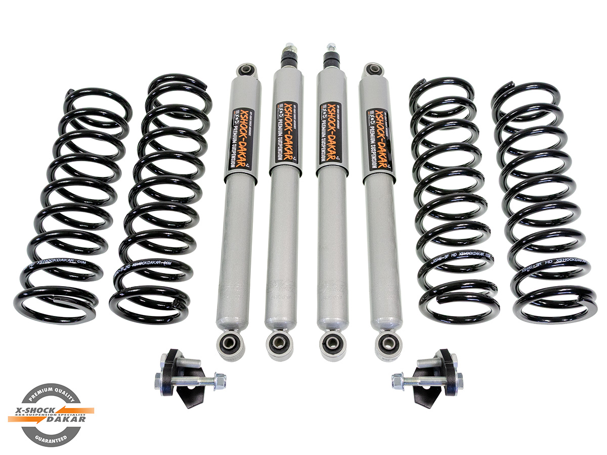 Zestaw zawieszenia Lift +3" marki XShockDakar.com to komplet sprężyn i amortyzatorów, który idealnie łączy właściwości terenowe z pewnym i stabilnym zachowaniem auta na drodze. To rozwiązanie stworzone zarówno dla miłośników