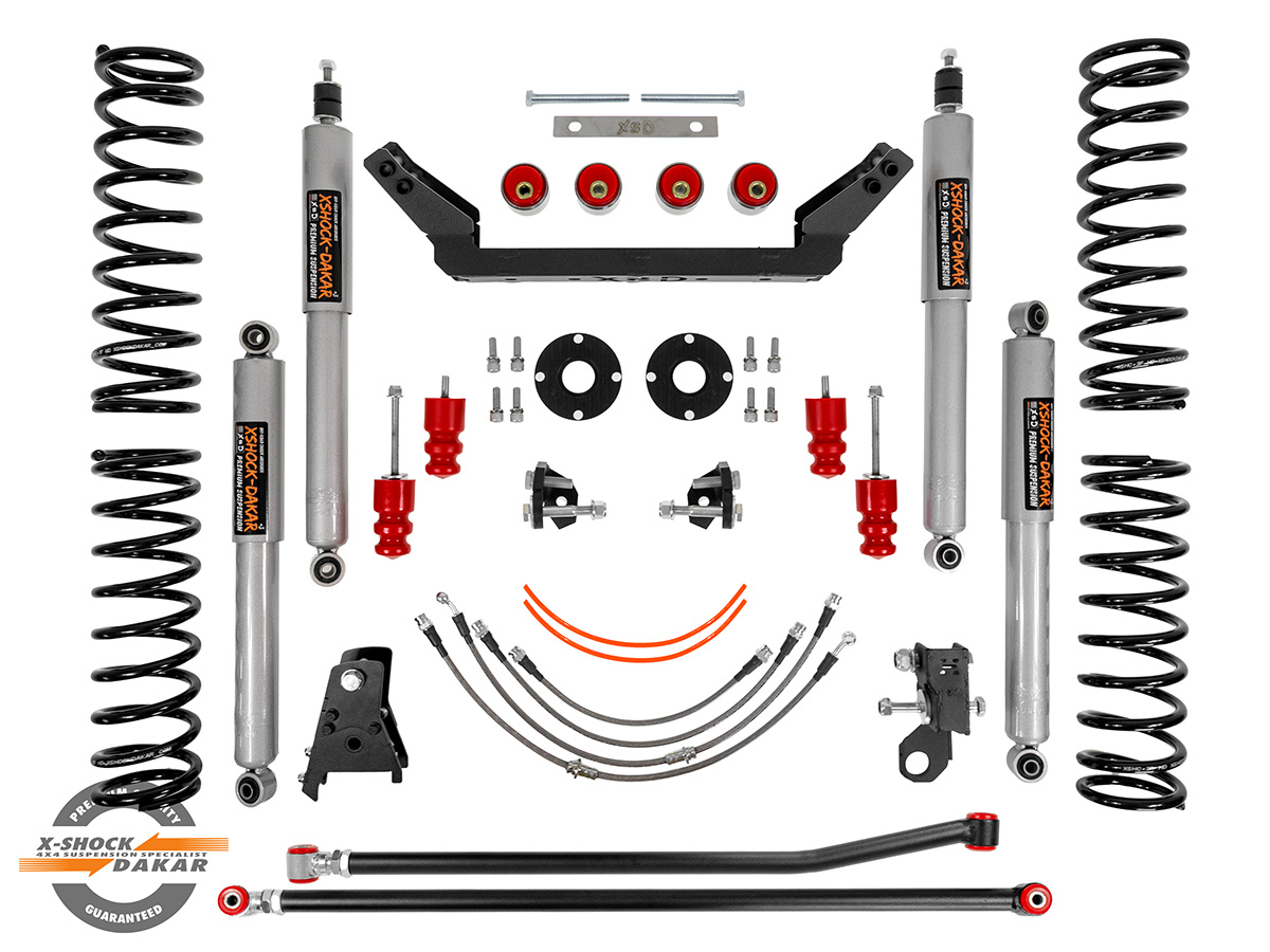 Kompletny zestaw zawieszenia podnoszący samochód o 3 cale (+7,5 cm ). Zwiększa prześwit, poprawia właściwości terenowe i umożliwia montaż większych kół, jednocześnie zachowując stabilność i komfort jazdy na drodze. Idealne rozwiązanie zarówno do codziennego użytkowania, jak i wymagających wypraw off-roadowych. W zestawie są dwa wzmocnione drążki panharda dzięki którym idealnie ustawisz geometrie samochodu i znacznie zwiększysz własności terenowe swojego samochodu.