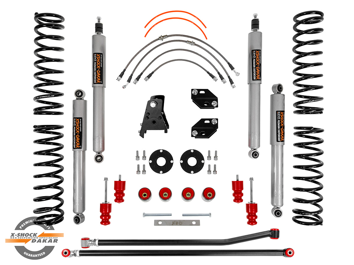 Kompletny zestaw zawieszenia podnoszący samochód o 2 cale ( +5 cm ). Zwiększa prześwit, poprawia właściwości terenowe i umożliwia montaż większych kół, jednocześnie zachowując stabilność i komfort jazdy na drodze. Idealne rozwiązanie zarówno do codziennego użytkowania, jak i wymagających wypraw off-roadowych. W zestawie są dwa wzmocnione drążki panharda dzięki którym idealnie ustawisz geometrie samochodu i znacznie zwiększysz własności terenowe swojego samochodu.