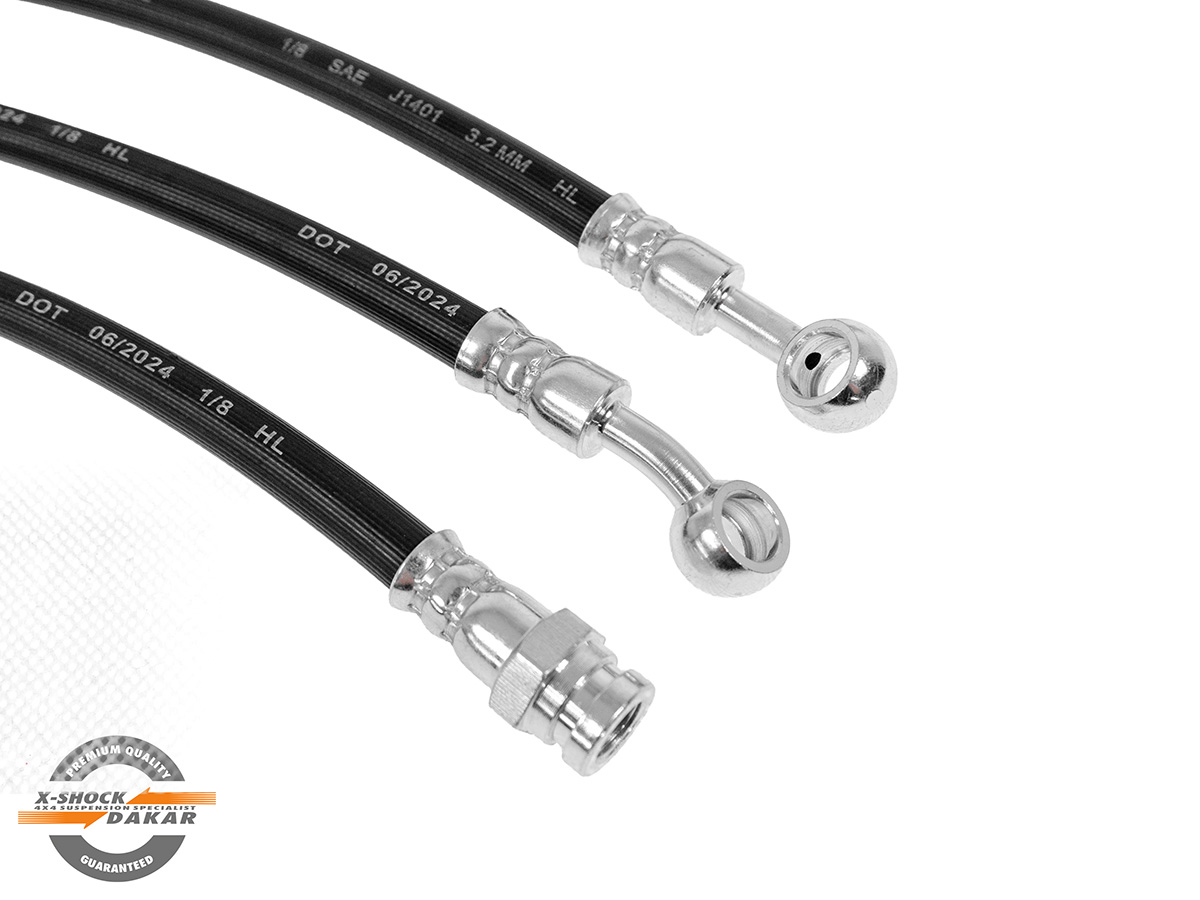 Dzięki wydłużonej konstrukcji przewody idealnie sprawdzają się przy liftach zawieszenia +2" +3" i +4", zapewniając pełne bezpieczeństwo i skuteczność hamowania nawet po znacznym podniesieniu auta.