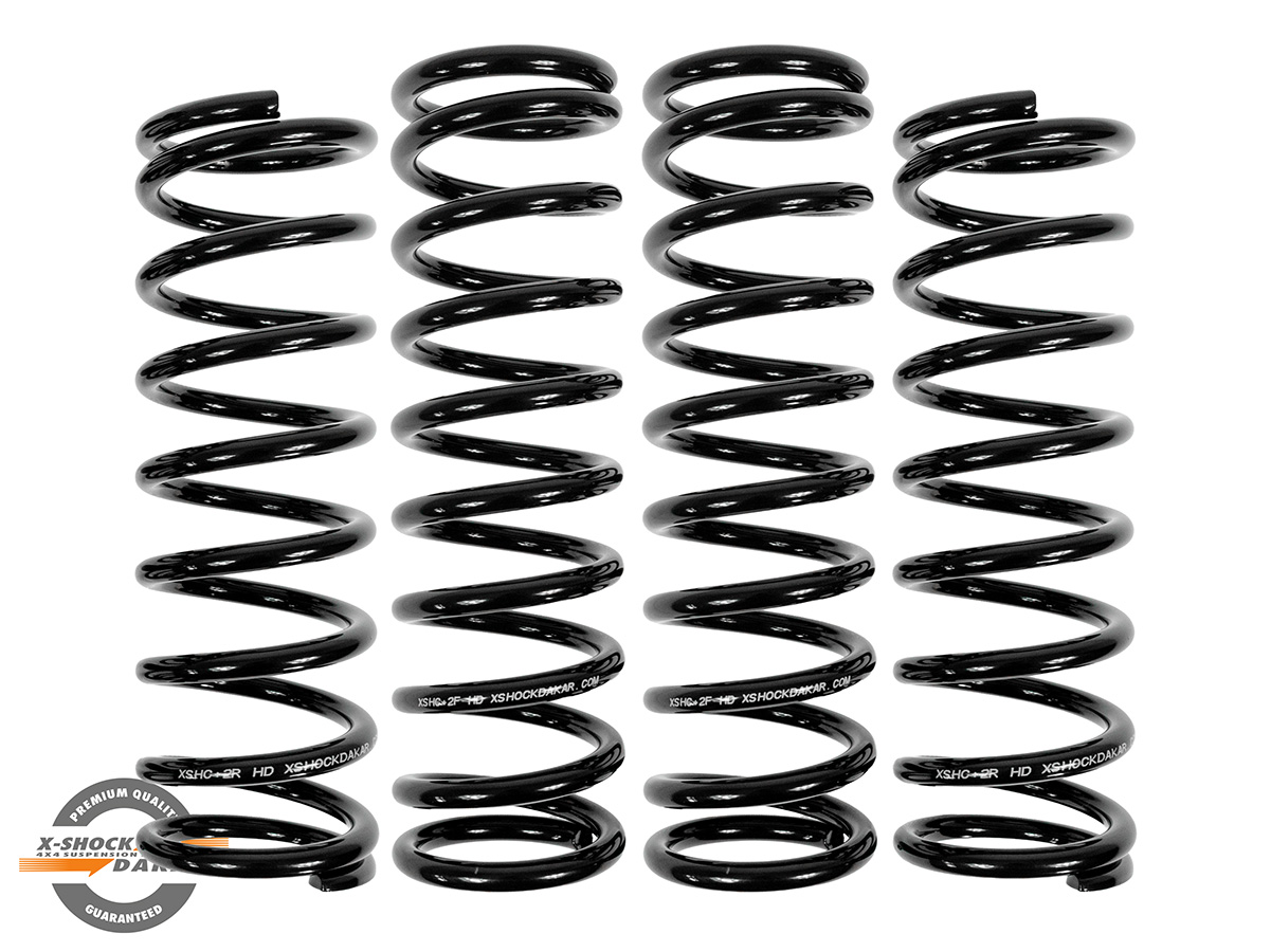 - 4 szt sprężyny XShockDakar.com +2" (czarne, malowane proszkowo, fabrycznie cechowane, z atestem ISO 9001:2008, produkt polski)