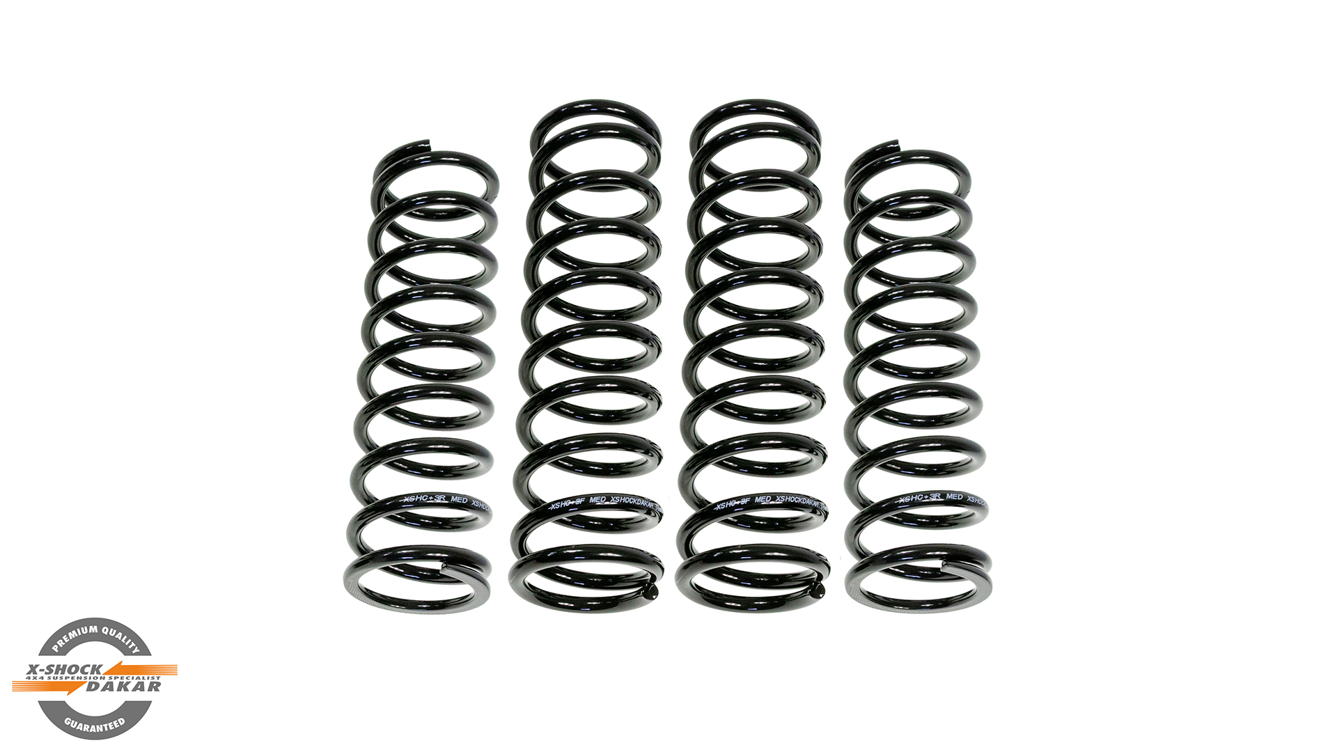- 4 sprężyny XShockDakar.com +3" w kolorze czarnym (malowane proszkowo, fabrycznie cechowane, pełny atest i certyfikat ISO 9001:2008, produkt polski)